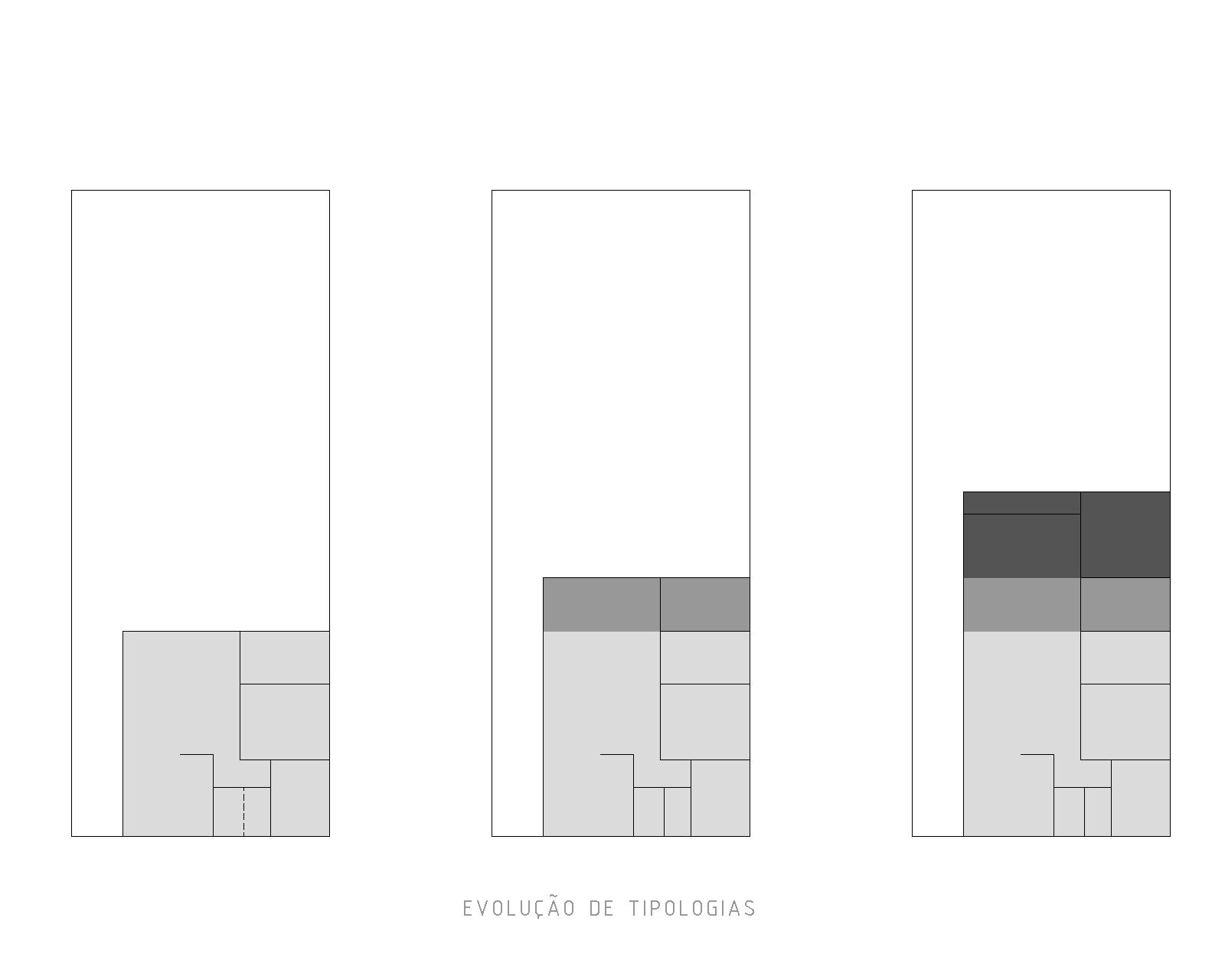 A planta de organização simples e apenas com os compartimentos necessários, mas com capacidade de evolução futura das tipologias.