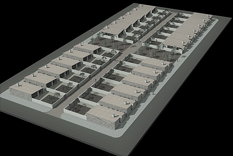 Cada uma das habitações conta com espaço exterior privado para atividades agrícolas de subsistência.